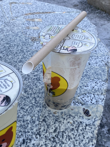 Cups are too thin!!!! When stabbing the straw, the side of the cup cracked open and milk tea exploded everywhere, and I mean everywhere. Our pants, shirt, shoes….I’ve never had this happen before. We lost more than half our milk tea, and it was too much of a hassle to go back to the cafe. We drove somewhere else to enjoy the tea, and had to go home immediately to change. We were also too afraid to stab open the other cup until we got home.