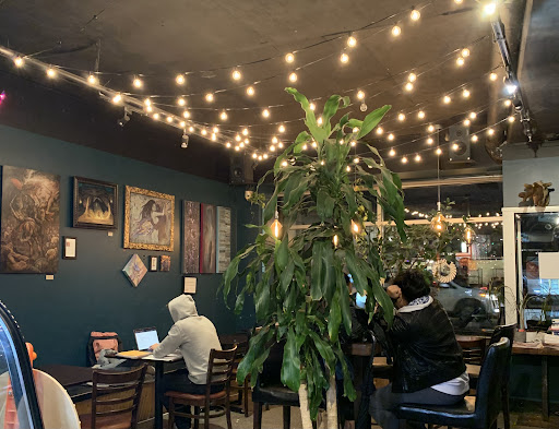 First of all, the decor is amazing. I don't know if it's because of the season, but the walls and shelves were lined with cool little gifts! There are also tons of wonderful art from local artists. I got myself a pair of moon tarot card earrings that I can't wait to put on.