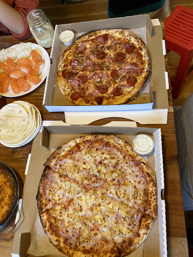 We were excited to order the King Arthur from the young server but the fellow in the back said "no steak" which meant we weren't going to get this order. Instead we ordered their Sicilian, a pizza with your typical Italian toppings. The pizza arrived after less than 10 minutes. The crust was very light and thin especially at the center, the tomato sauce was flavourful but the amount of cheese and sauce is meagre. The amount of meat in the toppings was ok. It was hard to pickup a slice without the toppings falling off due to the thinness of the dough. The pizza is 14" with all pizzas priced at $14.99. For those on a keto diet or wanting a light weight pizza this place offers an acceptable compromise. For diehard pizza fans the pies offered here would be most unsatisfying value and quality for the money. My family falls into this latter category. Sitting is limited to single bar stools along communal tables. Lighting is bright. Ambiance is not suitable...