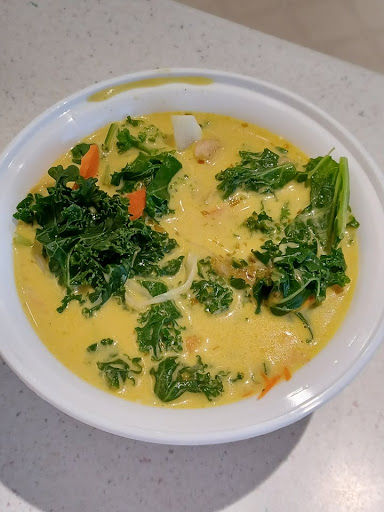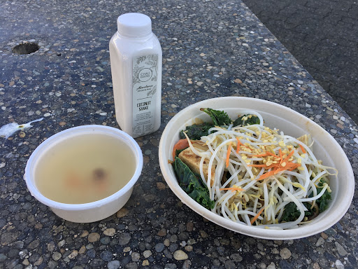This was so good! I had the #8 Rice Fields Bowl and a Coconut Shake. Pictures and menu description do not do justice to how flavourful the bowl was. Besides the delicious sauce and noodles, I really liked what a wide variety of fresh vegetables the bowl contained. I'm not sure if the included cup of broth was meant to be added to the bowl or drank on its own, but I thought it was nice to sip on as a warm side. It was very fragrant. The coconut shake was also very tasty even though my personal preference would have been for it to be a little less sweet. It's still not as sweet as a lot of commercially available drinks, I just like things with minimal sugar. The shake is made with natural, minimally processed ingredients and it shows in the fresh coconut taste. It was cool that it contained big chunks of coconut meat even though some of them were hard to drink directly from the bottle - I had to use my chopsticks on some of them, but I was able to get everything out. The price is quite good for the value. The portions for the bowls are big (I finished the whole thing without feeling like I was stuffing myself, but was totally satisfied after), and the food is really fresh and high quality. I paid less for the bowl than I've paid for many smaller and less impressive meals at sit-down restaurants. The staff here were very pleasant as well. I notice a lot of vendors in the market will try to get me to order when I'm just browsing, even from a distance, but these people gave me space until I actually walked up to the register and made eye contact which I really...