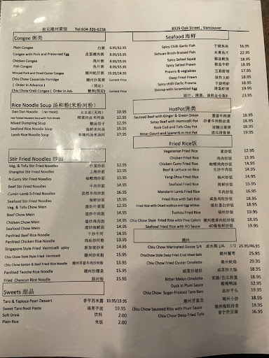 Read moreI used eat lots of Chiu Chow cuisine when I was growing up in Hong Kong, but in Greater Vancouver they are very rare. After reading the reviews I have decided to give it a try. I was preparing for the worst, but still hoping to have some good food. I know their restaurant is small, so I decided to arrive early at around 5pm for dinner, luckily I did, because they got busy around 6pm. After I sat down, I did notice some odd smell, smell like old furniture, I shifted my focus on the food, they arrived fairly quickly (one of the benefits of having dinner early). The marinated tofu was good, the intestines are just ok. Oyster omelette was awesome, worth every penny, taste like what I had in Hong Kong. The gai lan was good. Chiu chow style noodles was not bad too.