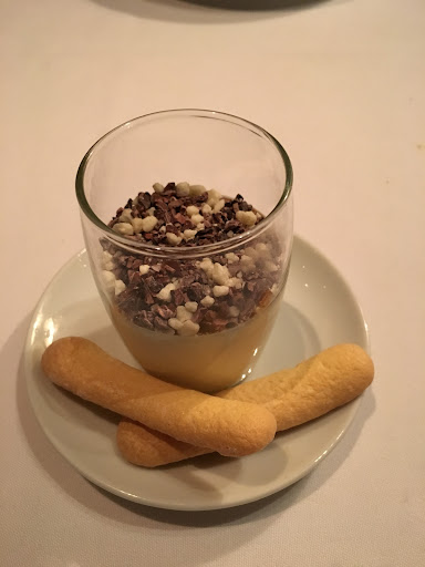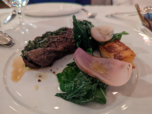 The food was an experience and thoroughly delicious. Let me address the question of portion size first. The portions are not small. There is a menu option where the course of dining consists of an appetizer, first (small plate) pasta course, second main course, and dessert. Diners can elect to also have the pasta as a full size main. We had a selection of of mains and pasta that were all excellent, without exception. The steak has a pronounced garlic seasoning that non-lovers of garlic may find strong. The pasta with spicy Italian sausage is fairly spicy. I offer this information as comment and not criticism, as my palate enjoyed all the flavors on offer.