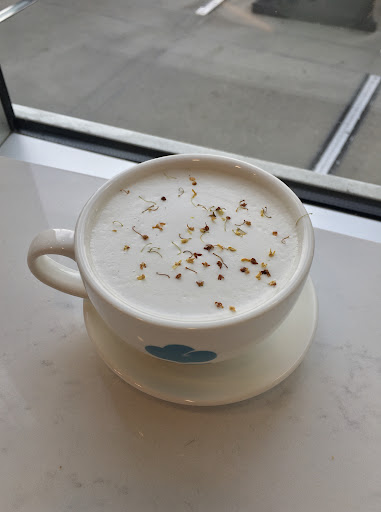 I really liked this place... I visited two days in a row because I was really charmed. Good atmosphere, lots of natural light with one of those big windows that could roll up (even though it was closed, it still gave the place a more open feel), lots of seating, two levels which is interesting. Calming music. Mostly clean, but there were some flies in the bathroom - not a lot that I was seriously put off but enough that I noticed. The baristas were very polite. The barista on my first visit very patient with all the customizations I was making on my drink. On my second visit, they messed up my order and made me something with a similar name but when I explained, they were nice about replacing it and even made a bigger size. The drink menu is huge - they have bubble tea and unique drinks along with basic coffee and tea, a variety of pastries, and some light food. The bubble tea drinks are made "from scratch" with real brewed tea instead of powders or concentrates so you can customize with nondairy milk. I got: Guacamole toast: Pretty simple, but good, like homemade food. Everything tasted very fresh. I think there was a little sprinkle of pepper which was subtle but made a difference in making it taste like a dish and not some stuff thrown together on bread. The price ($9) is a little steep for the small portion. Carrot walnut muffin: Standard carrot muffin. Soft and light. Pistachio cookie: Very soft cookie with little dollops of frosting, a pistachio paste drizzle, and a sprinkling of pistachio pieces. Not too sweet. The pistachio paste drizzle was kind of skimpy but the small amount of frosting like a garnish was actually perfect - it was a very nice cookie by itself and more frosting would have been excessive. Sakura oolong tea latte w/ red bean popping pearls: The tea was very good. I kind of expected a sweet sakura flavour but it wasn't sweet at all, which highlighted the fragrance of the tea itself. The red bean popping pearls were super interesting - not red bean-flavoured popping pearls but pearls with whole red beans inside. It was a cool and enjoyable texture with the combination of the pop and the chewy beans. Osmanthus Oolong Tea Latte: Very calming drink. Topped with a little sprinkle of flower buds which was...