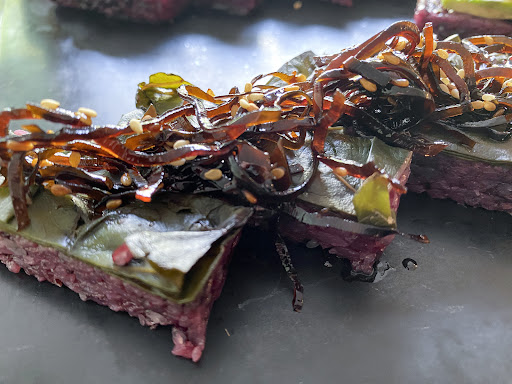 Google Maps guided us to Tremblay Motors. Apple Maps wanted to take us even further away. In fact, they are right below on the ground floor of Afghan Horsemen. So we walked down a back alley way towards the ground floor of Afghan Horsemen and found them among a number of smaller business. Not really understanding the menu description too well, I chose B–ONSAI. The first thing I love about these press sushi is that they are made with black sweet rice, much more nutritious than white sushi rice. Omakase comes with 16 pieces of pressed sushi in total. Our favourite was the tuna. I like the vivid beets sauce. But actually, everything tasted great. After we finished, I was still hungry and curious, and wanted to try from the custom menu. I didn't realize the sushi should be ordered as 8 cuts of 1 kind, 16 cuts of two kinds, and 16 cuts of 4 kinds. We ordered mushroom again, salmon, and tuna. We were there at lunch time and there was only one other occupied table. The server who is probably the owner, also prepared our dishes. The food seems to be made in advance – not a problem there since we are not dealing with raw seafood. Although the space, the interior is modern and calming, the seats are comfortable, the place is super clean. The service is good. The variety of sushi is sufficient. I especially appreciate the black rice. We returned for another meal and ordered D-AICHI because I thought the Fresh Veggie Mix would give me some more fresh vegetables. That's the trouble with most Japanese restaurant, they don't provide enough actual cruciferous vegetables. Unfortunately, the vegetables were pickled and neither of us enjoy vinegar on our food. I think it would very helpful if the menu provides more description of the food! The tofu, mango avocado and tuna mayo were not very exciting either. So when I ordered take out the third time, it was easy to choose B-ONSAI again – except we did not get the vivid beets and spicy mayo sauce which I...