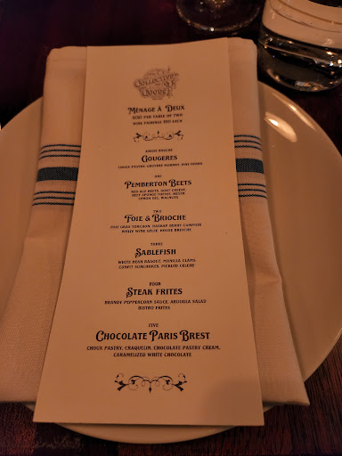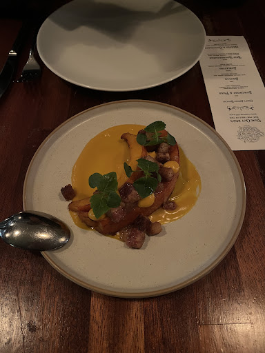 I have been going to this restaurant for a few years now, and I have always gotten their tasting menu and have been drawn back to its exquisite flavours. A few years back, the liver mousse with apricot and the steak frites were my all time favourites and I always craved for it. (The menu itself is quite small, and the most recent time I went back, I found that the new rotation of dishes weren’t as memorable as some of the previous ones) I always thought that the tasting menu was on the more expensive side, but since the ingredients were quite high quality, i didn’t mind paying for the extra $$$. I had participated in dine out for the first time this year so I had the chance to make comparison- and it never stroke me that the menu (I believe it was $55 per person, 2024) shared a 5 course meal with a small one bite amouse-bouche (so 6 in total, technically), and was quite small. I had compared it to other west coast fusion, including some upscale michelin locations which offered 3 courses for the same price (+/- $5 per person), and found that the value this time around at collective goods was lacking. (For 6 full size dishes, 2 entrees and 2 desserts versus 5 tasting portion dishes + a one-bite amuse-bouche). The portion sizes were quite petite, and made with modest ingredients and vegetables for the first two courses. I found myself to be less than full when I finished the meal. I do appreciate the efforts for the restaurant to constantly try new flavours and inventing new dishes- especially the sunchoke and pears and the pancetta / squash were amazing. The sablefish was a 3/5 given that the flavours were a bit too acidic and not much else (especially the pickled crosnes). The beef bourguignon was good but I found to be lacking in tenderness after trying a similar dish at the boulevard (I missed the streak frites, as it was more filling). Dessert was very rich and tasty but personally I am not the biggest sweet tooth so it was on the sweeter side. From a general perspective, I found that my satisfaction went down with the tasting this year. Nonetheless I have been a fan of this place despite the location is a bit tucked away for a few years now and will likely go again; hoping to see the feedback to be taken in so I would be back for a better experience next time.