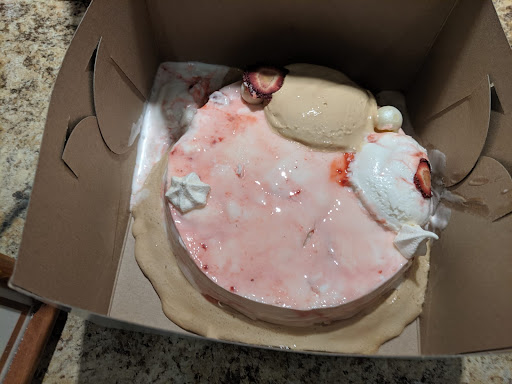 1 star is too much for their service! To be fair, their ice cream is amazing but their cakes are not reliable especially when there is a special occasion. Yesterday, my husband got me a cake for my birthday at 4 pm and put it in the freezer to have it after the celebration and dinner. We came back home to find out the cake is totally melted in its box (see pic). Obviously you would think that the freezer is not working, but trust me everything else in our freezer is totally frozen and we have no other problem. We figured the issue is with the cake so he went back to the store(literally 3 min away from our place). First, they said they cannot do anything because there is no receipt then they said they don't have a record of the purchase even on their system and they told him to wait till next day so the manager talks to him. They ruined the night, no cake for me. Oh, their salespersons have no clue what's inside the cakes! We once bought a cake that should have no coffee at all, double-checked with her and the label a couple of times, but it turned out that it is a coffee based ice cream cake! We didnt make a fuss about it and let it go. Back to my ruined bday cake: Next day, they called him back and said it's not their responsibility once it's out of their store. After showing how disappointed we both were, they will give 50% off next purchase. Thank you manager, we don't need your 50% off because we will never ever buy any cake from you. And out of principle and the way you didn't compensate for ruining my birthday for me, we wont purchase even your Gelato and make sure that all our friends know how unreliable the cakes are and even your service to your local customers!