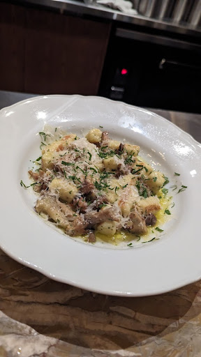 Food If you are coming here for snacks and wine. With great conversation among friends, I think the food choices here are well thought out finger food. Small dishes, probably only to share between 2 people. Before warned that the larger issues are quite pricey. That is not to say that the food wasn't great it was delicious and plated impeccably! For my girlfriend and I, we had a total of 4 glasses of wine (her 3 me 1), daily cheese selection with pear puree, anchovies, pil pil shrimp, and the gnocchi My total was 80+ after tax and tip. Probably more for my friend due to the wine. In my opinion, the spot is definitely a great place to catch up with friends over drinks and snacks. It's more like an after dinner place. However, if you're thinking of dinner, you might have to order more dishes if you wish to satisfy your hunger. The food did take a tad longer than expected to arrive at our table. However, it might have been because they had a full house.