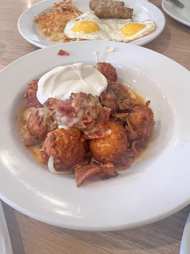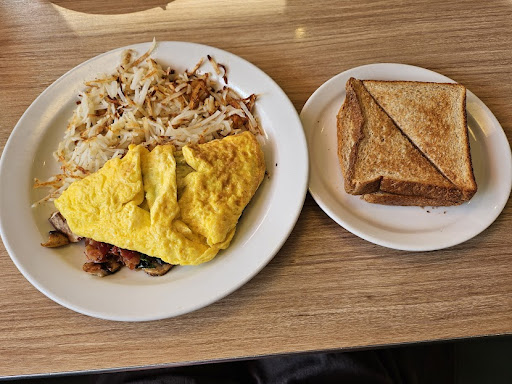 Read moreWe went in for a birthday grandslam. It was quiet...too quiet. No music. A young smiling woman greeted us and sat us at our table, sadly there was a bait and switch. Our new waitress was..um...more experienced and she had sold her smile to the devil. She was probably once so happy, she once ran through the fields and danced at festivals, laughed at jokes and wrote poetry...but now, the dark reality of life had taken over. We ordered eggs sunnyside up so her life could be brighter. Maybe she heard reports of people pretending it was their birthday, or perhaps she didn't think birthdays happen on Saturdays...whatever the reason,she checked my friend's passport for 60 seconds, until she was 100% certain we were telling the truth. She kinda took the order, but really I think she told us what we were having. I ordered some french toast. " Just one piece?" she asked? I now felt weak, like I wasn't a man anymore. Even though my stomach is now golfball sized, I ordered hashbrowns to show her I was big and strong. She walked away, looked back and grunted "Happy birthday". Angry at how beautiful and young my friend was, the waitress through a pile of forks and knives on the floor. We jumped at the sound! No other table reacted to this noise, because they were ghosts. I looked at my friend's incredible smile and the atmosphere in the place increased immediately. (OK I'm adding two stars now). Our waitress returned and 'Throw/dropped/handed' us the plates. She said happy birthday again, but this time in a more sad way. We just laughed for 20 mins. We ate, we laughed some more, we dreamed. She brought us the check, I paid. We put our coats on. Then the waitress came back and asked me to pay again, it was then I realized it was...