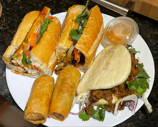 Definitely get the spring rolls with your bao - finally a big crispy vegan roll! I ordered a lot: the vegan spring rolls, two bao (chick'n was my fave but the oyster was delicious too), and a banh mi, just in case anything wasn't great or satisfying. But now I'm stuffed with bao, looking at this banh mi the size of my forearm, wondering why I've never ordered from here before. A more restrained person or lighter eater could definitely get lunch for under $20.