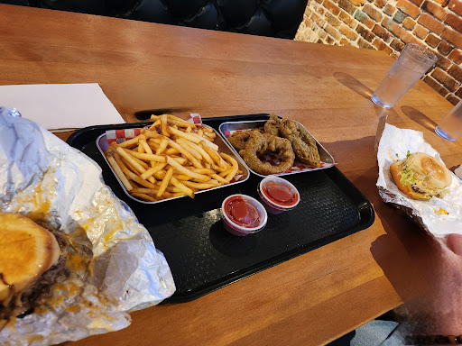Ā Ā Ā Read moreThe burgers were yummy but a bit too saucy since they wrap it up when served. I understand the niche of wrapping it up but the burger gets soggy in transport, we had the Americana and the Oklahoma. The fries were a bit salty and the onion rings were a regretful overpriced choice. The batter they use for the onion rings wasn't thick but wasn't flavourful and held a lot of oil. Also I asked for some hot sauce and they didn't bring over a bottle but instead in a plastic container and they charged me for it. If they had told me that I wouldn't of gotten it, although it did give my burger (the Oklahoma) the bite and another note of flavour it needed.