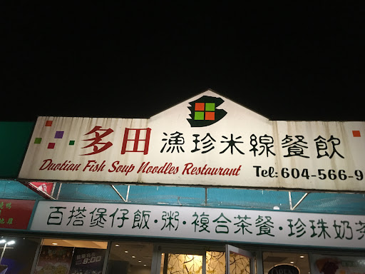 Read moreThe Duotian Fish Soup Noodles Restaurant is located by many other stores and restaurants and is very convenient for shopping. Me and my family go and eat in this restaurant on many Saturdays nights. I have some positive ideas to share, as well as what can be improved and 2 recommendations. Positive + +1+ Fast the food came out in a fast manner, most in like about 5 minutes, including noodle soups and mixed rice dishes +2+ Variety appreciated how there are a variety of foods and drinks to choose from, from noodle soups, sandwiches to fried rice, and milk tea to bubble tea +3+ Late night options starting at 8:00 pm, there are smaller sized foods like spaghetti with meat sauce and an egg and tuna rolls with fries at a lower cost +4+ Taste the food we tried tasted great. We haven't tried the bubble teas yet, but I would assume those would taste great too Improve on - -1- The floor for the most part, the floor is clean, but not so much by the bathrooms, and the mens bathroom has its floor wet many times. It would be nice if a staff could mop the floor dry. As well, when I peeked through the kitchen floor, the floor is in need of some sweeping. Food scraps and liquid can be seen on the floor of the kitchen -2- The service sometimes the waitresses would say things across the restaurant, making it a little less enjoyable to be in. Would like for them to be mindful of the customers and to speak closer -3- Music the type of music played is fine, but we find the music a little bit loud. Would prefer if they could tone it down a little -4- Food safety this may be the biggest concern; for the most part, we left the restaurant full and no issues regarding any illness. However, we ordered spaghetti with chicken one evening and I believe the chicken was not well cooked. My sister and I both ate the chicken and we got a little sick. The wording "cooked in a timely manner" does not mean food that comes out as fast as the chefs can cook, but on the right temperatures and all sides of the food cooked thoroughly without taking too long Recommendations * 1 Discount for re-usable items it would be great if the restaurant encourages customers to bring their re-usable straws and mugs for their drinks, and their re-usable containers to take out left over foods and giving them a discount for doing so. I bring in a re-usable straw for my drinks and re-usable containers for food and would like to see others doing so as well, just so to reduce the number of single use plastics and foam toward our landfills. 2 "How to wash hands" poster would appreciate if there was a sign from the Vancouver Coastal Health on how to clean your hands, posted by the sink in the bathroom Overall, our experience of going to the Duotian Fish Soup Noodles Restaurant is not the best, but not the worst either. I would continue to go but order small dishes to have instead. And if I were to recommend this establishment? I would say give it a try by starting small and continue if you enjoy...