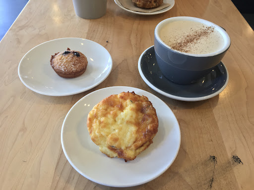 I've been meaning to come here because I love the coffee at places that use their beans, but when I saw they had a rooibos chai and ended up getting that instead of anything bean. Pretty good chai latte, unsweetened (which is my preference) but very smooth. I also had the Rosemary Egg Muffin and a Friand. Egg muffin was really nice with the layer of melted cheese on top and made a light but surprisingly satisfying lunch. It was my first time seeing a friand and it sounded neat so I wanted to try, and really liked it! It's kind of like a cross between a poundcake and almond cookie - very dense, but soft and moist. They have a small assortment of other baked goods and 3 sandwiches (two meat sandwiches that I can't remember the details of and a grilled cheese). The food is priced pretty reasonably. They apparently have complimentary sparkling water but the friend I went with and I weren't offered any and I didn't see it mentioned anywhere, I only gathered this from watching other customers get it from the barista when they ordered. Very cool that they have it and I wish I'd known about it to take advantage when I ordered. The front facade of the building is really pretty. The interior is basically a run-of-the-mill Vancouver coffee shop: clean and bright, lots of plants, lots of natural light. It's on the smaller side, but laid-out well so that it doesn't feel cramped or get congested. Baristas were nice and approachable. From my perspective, it's a good place to try if you're in the area often, but it's not somewhere I'd go out of my way for. Even though it was my first time there I feel like I've basically been to this same shop dozens of times... Nothing really wrong with it, the food and drink was very good and the environment pleasant, just lacking character. But maybe I'm just...