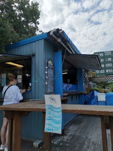 Read moreGreat fish and chips place on/across(?) from Granville Island. Well liked by many. It is off the main area of the Granville market and overlooks the water. Staff are friendly and still tolerated my foodmates "dad joke". One chef I will call the "Go fish karaoke rocker"...he was so happy singing along to Foo Fighters and Blink 182...hilarious. I got the salmon, which was hot and well battered, not too heavy like other amateur fish and chips makers. Chips were the best, hot, thick cut and well fried with a hint of salt...this always makes the dish. I am surprised the salmon kept the moisture. Not the usually fish to use in fish and chips. My foodmate had the Halibut. All food was served in bamboo steamers which are usually used for dim sum...cute and unique touch. Coleslaw had no mayo, this was the best part! I am very impressed of the salt and pepper vinegar flavouring. Ambiance: Overlooking the water and great place to people watch those who are running or bicycling at the waterfront. Has both large communal tables and smaller two-fers at the "bar". Cost: $12-15 for single piece with chips depending on the fish. Only caution, is the crows in the area! They are watching to steal anything from you! Otherwise, overall unassuming, tasty and reasonably priced fish and chips shack on the edge of the water with outdoor patio space to enjoy the scenery. Really would rate it 4.5 stars! A gem in the craziness of...