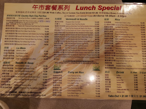 Read moreCame on a Saturday for lunch. The restaurant wasn't crowded at all and not many visitors at 11:30am. We ordered the eel rice (small size), stir fried beef rice noodle and clams. First off everything was really well priced. This size of noodles for $12.95 is a steal at this day and age. It was on the oily side but there was definitely a bit of wokhei (fire flavour) to it. It didn't have much beef but I liked the crunch from the bean sprouts. The eel claypot rice (small size) was cooked really well. The bottom crispy bit was really well done. Crunchy and not chewy. The rice was flavourful. But the eel on top you can't really taste and the chinese sausage that accompanied masked the flavour of the eel. Would recommend you to try the claypot rice but not the eel claypot rice. The clams again for the price was really worth it. Not overly salty. Each clam had meat in it and it was very meaty. Of the ones I had, I didn't get any with sand which is always a good thing. The service was really friendly. They gave us a big bowl of soup on the house and the food came out really fast. I would come back for the other claypot rice and to try their other lunch items because they are well priced. The restaurant itself feels kind of dirty but I mean it's part of the charm...