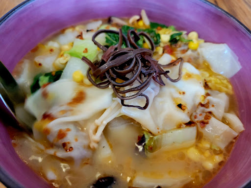 Andrea Carlson came on board as a consultant at a new local grocer, the idea for which had been crowd-sourced, as had the name. Just a few months later the consultant became the owner of Harvest Community Foods. The grocer became more than just a retail store operation. They threw in a simple menu of ramen and udon options, most around 12 bucks. Before you know it, they stuck oil, and it drew a crowd.