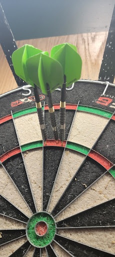 Darts: They have new blade 6 boards up and the dart area was well set up... The boards were nice and bright. The chalk boards were difficult to write on/see clearly and there weren't any erasers. Perhaps the bar could put up new chalk boards that can be written on clearly, and are a little bigger than the ones that are currently up? I did noticed an outlet near the left board, so I may just bring my tablet next time and use a scoring app...I'd have to check to see if there is free wifi. Update: There is Free wifi and the tablet worked great, still, replacement chalk boards would make it easier for all playing darts.