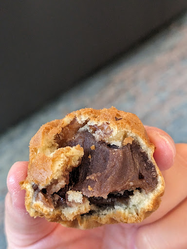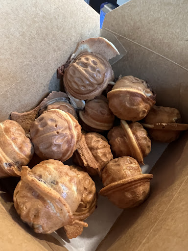 I was super excited stopping by here. Walnut cakes were freshly made by the owner. I ordered 15 pcs with ($11, mixture of cream, red bean and white bean) a cappuccino ( $3). My mouth couldn’t stop munching because there was more than one sample. The owner was super generous giving me samples after 5PM. Tried white walnut cake, choco chip sour cream cookie, and some cookie. I forgot what it was called.