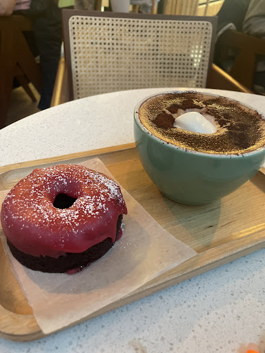 Read moreMy favourite part of this coffee shop was the bathroom. Not because everything else was bad, but because the vibes in the bathroom were particularly good. Honolulu as a whole was quite good. I walked in from the cold rain and immediately felt warm and comfortable. The atmosphere is obviously tropical and boho, as per the name, but it is done in a tasteful way. I’ve been meaning to try Honolulu for a long time but I specifically went for their Hot Chocolate Fest creations. I tried the Donut, which was a decadent hot chocolate paired with a raspberry chocolate donut. I don’t particularly like the classic raspberry-chocolate duo, because if you add fruit to dessert it obviously automatically makes it breakfast, but this pairing was down very well. The donut itself was soft and not too heavy, which is a nice change from many of the donuts you can get in Vancouver. The seating options are all comfortable and varied, making the overall experience cozy and welcoming. The bathrooms, decked out with tropical leaf wallpaper and an aesthetically pleasing accent cabinet and good lighting, make for a good mirror selfie. Because we have our...