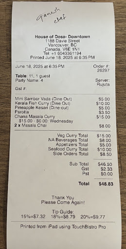 The food didn’t make up for the experience either—it was forgettable at best and cold at worst. House of Dosa used to have a good reputation, but this visit showed a complete lack of care or hospitality. Definitely won’t be returning or...