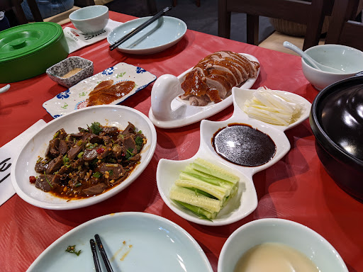 The duck is delicious and our group thought it was well worth the money. The set duck price comes with masterfully cut duck pieces, crispy duck skin with cane sugar for dipping (like Asian chicharron), and all the accoutrements for Chinese duck pancakes. I've tried Peking duck on both city coasts of North America with a large Chinese population. Trust me, this place delivers as advertised when you're craving Peking duck pancakes. There are only a limited amount of ducks roasted per day though so be sure to call ahead and reserve one. We also got a cold side dish of duck gizzards and were pleasantly surprised. The texture was tender, and flavors were on point. Everything went perfectly with their house brewed IPA. It definitely helps if one of your party speaks Mandarin so the language barrier isn't as difficult if you have any questions or special requests. We also read the entertainingly bad Google reviews talking about the poor customer service and management before coming here. We did not experience this. They were warm...