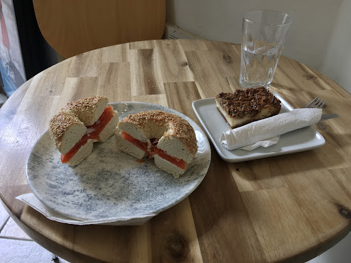 Ā Ā Ā Read moreComfy local coffee shop on the outskirts of downtown, close to the water. Small inside, but lots of tables outside. Very kind staff. Because it's a little distanced from the downtown core, it avoids the "corporate lunch break" vibe of more central cafes, and instead seems more popular with neighbourhood residents and people coming to/from the beach. I visited them on my lunch break since I had extra time to venture out; it was a nice change of pace. The food is all homemade and that really made a difference, even though what I got was simple stuff. I had a smoked salmon bagel and a pecan pie cheesecake. They were very generous with the salmon but the capers and red onion were sparse - I would have liked more of the vegetables and some greens would have been nice. It was a good sandwich, though, tasted very fresh. They warmed it up just enough to toast the bagel without getting the salmon hot. The cheesecake was really good, with the perfect harmony of crunchy and chewy candied pecans with creamy cheesecake. Pretty affordable at about $16 total after tax. Give them a try if you're in the area and want a simple meal or treat...