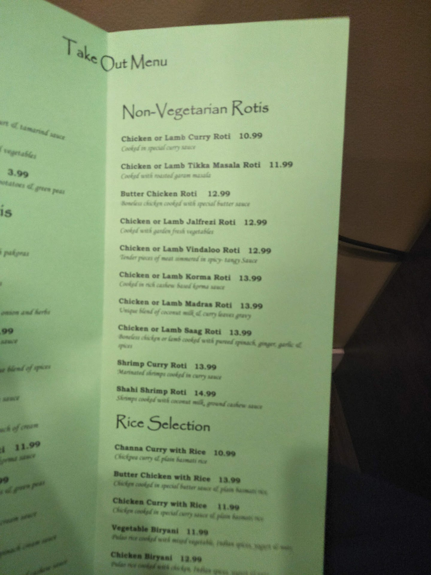 Read moreWhoever came up with this idea is a genius. The roti dishes are like a roti pie, or like a big enchilada, and they are delicious! The portions are generous and very reasonably priced considering the pressure restaurants are under right now. I ate the whole thing myself and felt very full but I'm a pig so you could probably comfortably feed 2 or even 3 people with one roti dish, I'd say they weigh around 1000~1300 grams each. I like that you can customize the spice level too, but the medium-spicy was more than enough for me and I eat spicy food often! I tried the lamb vindaloo and it was excellent, the lamb was tender and there was plenty of it, and the vindaloo had a nice tang and spice flavor that lingered on your tongue. The takeout containers are sturdy aluminum that you can also eat out of, and the disposable cutlery is very solid and works well for cutting. It's clear that the takeout hardware was chosen specifically for its quality, i don't think any other kind of takeout container could stand up to the roti pie and a wimpy knife & fork are just not satisfying to eat with. We ate outside at a picnic table and everyone who walked by said they could smell it from almost a block away, it's powerful! I also noticed that you could smell the restaurant from well down the street where we parked! The papadams are great and the veggie pakoras had a great crunch with a strong caramelized onion flavor and a creamy potato center. I liked that the chutney didn't have an overwhelming tamarind flavor, just a nice acidity to brighten things up a bit. The online order system is easy to use and works excellent, I was super happy with it. Overall a great restaurant with a lot of thought and care put into their dishes, highly...