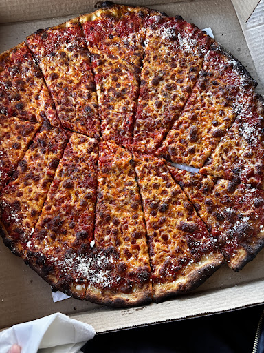 I ordered takeout and was pleasantly surprised excellence and attention to detail that they put into this pie. The dough has a cracker crunch (especially on the outer crust) while maintaining a moisture on the top crust - no flop. The ingredient quality was fantastic - tomatoes were sweet but tart, not tiney tasting; the cheese was melted (a touch greasy maybe) but a perfect complement. I ordered it earlier around lunch time, brought a couple of slices home for my wife to try around dinner and it was STILL CRUNCHY 🤯👀👀