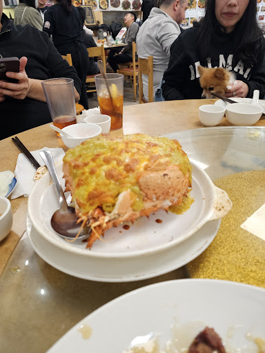 Drinks (can pops, lemon iced tea, etc.. or pitchers of beer). Charged $3.50 extra cause asked for a 3rd drink even tho there were just 2 of us. But technically we can have up to 4-6 drinks? Daily soup (apple with pork bone soup). Pretty close to tasting just like warm water with msg, one of the worser daily soup I had in a very long time. Failed! Steamed king crab legs and claws with minced garlics and green onions. Tasted okay and might be better if the ingredients were more eventually delivered and spread. Also seemed a bit rushed in prep and presentation. Deep friend king crab knuckles and body. Once again, very basic and simple, lightly seasoned and deep fried fast food style. Baked king crab with seafood curry fried rice. Besides the taste of the curry sauce, the rest of the tastes were lost somewhere just not on my taste buds. And the servers brought out 4-5 of them at the same time and seemingly just passing each table one who ordered king crab. Egg noodles mixed with king crab sauce. I only took a taster bite cause once again the servers brought out 4-5 of them at the same time and I went “hmmm…..” when I heard them saying ,”you give one to that table yet?” In Cantonese. I didn’t mind about the rice cause no customers touched the head but the leftover sauces from each tables?!? Hmmmm…. Stir fried pea tips with garlic. Pretty basic, but could’ve used some “wok hay” Half Hainanese chicken. Okay, let’s just say had better ones. Green bean dessert soup. Came nice and hot which was good. Some work and effort were put into this, I liked it!