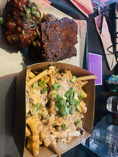 The pick up area looked very unassuming to me but we’re told very courteously to go next door where we could eat in as that was our preference…then the adventure began! We were welcomed very warmly at the door and got seated pretty quickly. Our orders came rather quickly too (we were a party of 5 and we all ordered 2 types of meals so maybe that helped). One of us wasn’t sure about the drink to order but the absolutely lovely Sabrine of Juke Fried Chicken asked what she liked and came up with a drink she liked! Sabrine was lovely, funny and warm all while being very efficient. The food…the food was goooood! We all liked what we ordered and the portions are good too. The dressed fries was so flavourful and the fries somehow remained crisp even after I got home with my leftovers. Ribs comes clean off the bone but not ridiculously soft and soggy. And the chicken was great! The ambience was cozy, the patrons seemed nice and even though I didn’t go in the washroom myself I hear it was clean and nice. Juke Fried Chicken made an already memorable day extra special! Definitely an experience I look forward to...