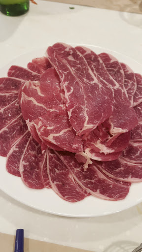 So, what's bad? Soup bases Blood cube taste foul Even wagyu wasn't good, super tough Didn't let us order more, but also didn't warn us before time is up to order more items. We said if it's too late, it's okay. She chose to accept it but treated us badly afterward. Touch our veggies with bare hands when she just cleaned another table No refilling tea (have to ask multiple times) No refilling soup base (and when refilled, it was tasteless) Some veggies came partially rotten. Beef tongue came cooked for some reason, unlike other place. Ordered 5 daily dessert for 3 people. Got 1 normal size and 2 bowls containing 2 smaller pieces. It was coconut jelly, tasted like geletenous tap water. Lamb was super gamey! We usually love lamb, but was struggling with theirs. Meat and many items are cheap & low in quality. Below average.