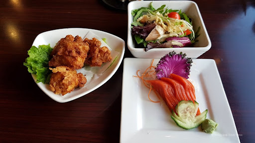 We returned a couple of months later during lunch. Due to their location, this is a fairly busy place during the lunch hour so we were lucky to grab a table. Their lunch specials are $12.99 and you get to pick 3 items plus miso soup. First up was the combination of Chicken Karaage, Sashimi Salad, and Wild Salmon Sashimi. I thought the karaage had a bit too much batter but the wild sashimi was really good.