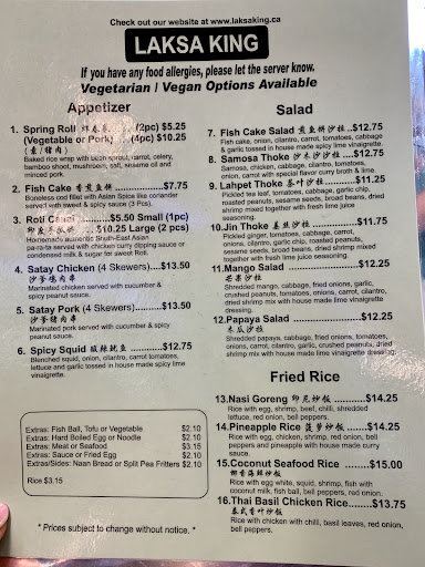 Read moreWas craving some laksa while in the neighborhood, and after some online searching figured that a place called Laksa King would be our best bet (you don't name yourselves Laksa King unless you do a good Laksa!). The restaurant is a shabby-chic 50's diner theme, complete with red pleather dinning booths, neon accent lighting and a car-hop wall mural. It feels totally out of place but you really don't care and if anything it makes your dining experience that much more memorable. Our service was pleasant, I did feel a bit sorry for the one server who was working hard to manage the entire place but he seemed to have things under control. Our bowls of laksa came out promptly and steaming hot, I took that little lime and squeezed the life out of it into my broth and proceeded to enjoy its wonderful, complex flavour. It's got a nice spicy kick to it, not too spicy though (I enjoy a medium spice level with things usually so it was perfect for me). I appreciated that the restaurant provided us with a pile of napkins because the spice was clearing out my sinuses very effectively. If I was hungry enough I would have also ordered the roti, I'll have to try again next time.