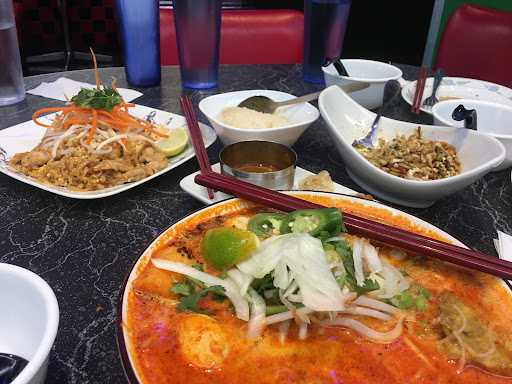 Read moreI gave 3 stars because food is good and price is reasonable. For 4 satays at $16, it's pricey but it's definitely good meat, not burnt and the peanut sauce was on point. My dad even slurped it clean without the chicken. The laksa is perfect. U could ask for no spicy as well, which I would have gotten for my kids instead of the pad Thai which was a bit sweet to our liking. (Just s personal preference). Laksa comes with a whole egg, some tofu puff, two prawns, beans prout and good amount of chicken. For that amount, I thought pricing was great. Chicken curry and beef rendang were good too. What failed miserably is the service. When we got there, they didn't get us water right away. We had to ask. And I asked for a highchair for my kid. It looked dirty and I asked for it to be wiped. The young server took a wet towel and plopped and wiped the tray and left. The tray was drenched in water that I had to wipe it myself with a napkin or my kids sleeves gonna get wet. And while we were eating, dirty plates and bowls were piling up, and we put them on the side, hoping they would clear it. But no, I had to ask them to clear it. I deducted the stars because basic 101 waitressing skills was not there. Lastly, it was very uncomfortable sitting there eating in house. Not only was it cram, but the whole time, both my mom and my eyes were super stinging. Everyone else at the table was ok. I wonder if it was because we were sitting near the kitchen but man, that was truly an awful experience dining in. Maybe they should put up partition...