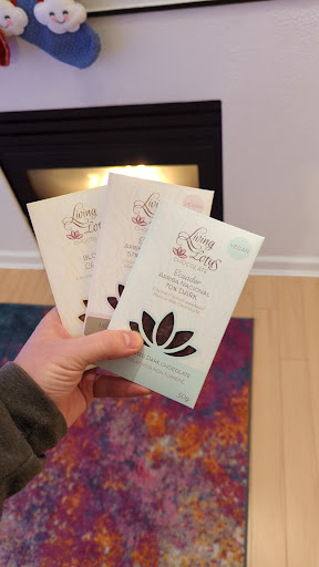 Read moreMy family is a big fan of Living Lotus' chocolates, and we get some as presents for co-workers, coaches, and teachers every year. The bars are crafted from premium, ethically sourced cacao beans, and the owner, Audrey, cares about the entire chocolate chain... including us! We recently were lucky to attend her new event "The Art of Chocolate," and loved learning more about how cacao is grown, harvested, and transformed into our favorite delicacy... and of course tasting different types! Do yourself a favor and run to your local store to get some of her...