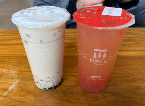 Macu Tea in Richmond has insanely long line, so the downtown location is much better in my opinion. Waited about 10min for a drink. Downtown location also has seating (2 booths that can seat 4 people each, outdoor patio seating, and a few more bench seats with small circular tables).