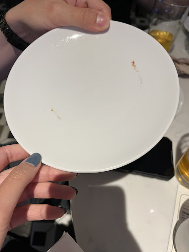 When i arrived at the restaurant, i was told to wait 10 minutes even though it was almost completely empty because it was late evening on a Tuesday. After being seated, it took 20 minutes for the waitress to come and take our drink orders. She did not come back to check on us or ask if we were ready to order food for a whole hour. We then realized she was sitting at the bar drinking alcohol and playing on her phone. We were shocked. We had to get up and approach her and ask if we can order food. We ended up ordering only a couple dishes because our expectations were very low by now. We were then given cups with lipstick stains on them and plates with food stains on them (photos attached). When we told the waitress about it, she seemed annoyed that we were asking her to do her job because it was interrupting her time drinking at the bar and socializing with the other employees which is what she was doing the whole time.