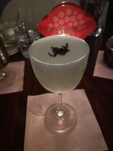 in terms of the atmosphere, I would say the music was really nice but extremely loud, you kinda have to speak a bit louder to talk to the person in front / beside you, but the flip side is that the music kinda drowns out the sounds of the conversations of the people at other tables. it is also dark lighting, and with a combination of that, loud music, and drinks, with a lot of people talking a lot, can also make the environment feel quite stuffy. I did have to step out for some time, to catch my breath, and when I was standing outside, I did notice another party come out and say the exact thing that they needed the air. however, it was very beautifully decorated, and the menu was well designed too.