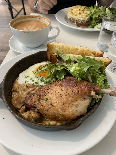 Read moreUPDATE! from 2 to 5 stars and here's why. We were invited back by one of the owners for complimentary meals with a reserved table. We had lunch there today (9/9). My husband had the Croque Madame which was DELICIOUS and I had the Cassoulet. The 1st and only time I had a cassoulet was in Carcassonne, France a couple of months ago, not far from the town where the dish originated. I have to say, I enjoyed the Cassoulet far more at Mon Pitou than I did in France (FWIW, the one in France was much heavier, too heavy, came with a lot more beans. At Mon Pitou, far less filler beans and a nice egg and toast). The duck leg here was far tastier as it wasn't drowning in beans! The Cafe Mocha was delicious, too!! Great that they had a guy circulating around the tables with a pitcher of water (as well as the owner, too!). Great lunch! Thanks VERY much!!! A much better and more memorable meal for all the right reasons. My husband & I were there for the first time, 12:30 today (8/28). We won't be back. We were disappointed and annoyed. We didn't go for breakfast, just wanted a snack and coffee. My husband ordered an apple galette, I ordered the apple caramel cake & noisette for a total of about $18. I found the cake very disappointing. Didn't taste the apple and the caramel was just a bit of syrup on top of a lot of cream cheese icing. I was told the noisette was only 3 oz for $4 but I ordered it anyway. The few tables inside were taken and there were a couple of free tables for 2 outside, so my husband sat down at one of the tables while I went back in to get my coffee. I was told it would be brought out. Fine. No problem. My little $4, 3 oz noisette came out in a large takeaway cup with a lid on it. Really? Why? Not classy at all. This French Cafe/Bakery doesn't have more environmentally correct espresso cups?? Were they trying to hide from other customers how little coffee there was?! O.K., we'll let that oddity go. But here is where it got annoying. Staff need to get their consistency together. My husband told the person that we would be taking our food outside. (Again, no place to sit inside.) The person who we ordered our food and coffee from said my coffee would be brought outside. Another person brought the coffee to me at the table we were sitting at. Nothing said by her. As we were finishing up, another staff person came over to us and said, "For next time, the tables are only for those having a full meal of breakfast or lunch." So if 2 people sit down at a table and only 1 orders a full breakfast (for about the same amount of money we spent), do they both have to get everything to go? There weren't any noticeable signs about this "rule" inside or out. I just noticed it on the website. As the people next to us said, "There won't be a next time,...