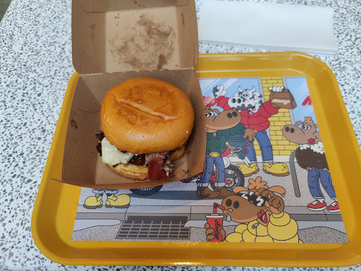 Read moreGreat vibe. Walked in and it is a modern take on an old school diner. Bright colors, nice lines, and clean as a whislte. I mean immaculate. A shelf of liquor, an ice cream machine for milkshakes, and booths and a old school counter with stools. Really a fun atmosphere. Four stars on atmosphere.