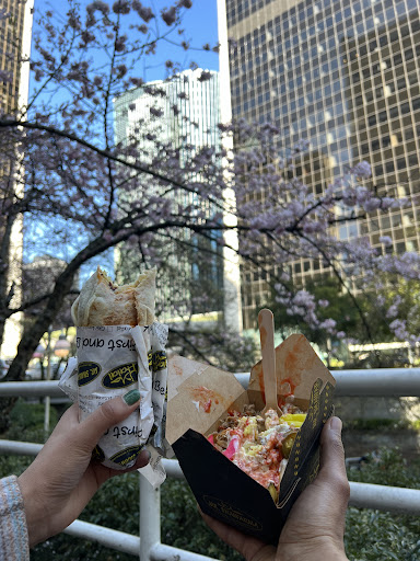 • Flavorful combos: The mix of juicy meat/falafel, crisp veggies, creamy garlic & tahini, and French fries is addicting
