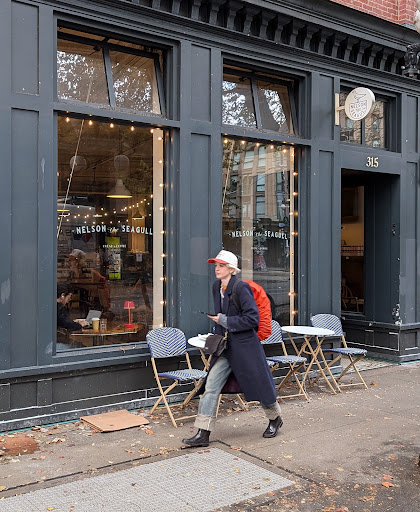 The vibe at Nelson The Seagull is very cool. Laid back, lived in, relaxed, homy. The decor is vintage and stylish, yet very practical. Good wi-fi and the staff are quite friendly and helpful. I work and live nearby and I'm not fancy, so I appreciate the lack of pretension.
