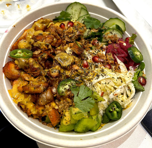 Read moreUpdate: Since my first visit 2 years ago, this place has become my favourite eatery! I take out a bowl almost once per week and the staff is always friendly and consistent with their portion size (and sauce amount!). Can't say enough good things about their food and the selection for the price. My build your own bowl comes to $14.65 with tax, and if eaten for lunch or dinner, it's a hearty meal or you can save some for leftovers! Pro tip: their dairy free mint citrus mayo sauce is the best!