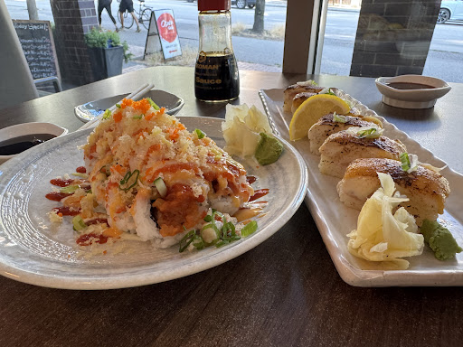 Read moreFor "budget" sushi, this is a solid choice. The portions are generous, prices are low, service is super friendly, take out was made very quickly, and everything in the order was correct. But I also just wanted to acknowledge that the take out containers for the hot food were made entirely of paper, which means that it's compostable too. I really appreciate this. Most restaurants are using plastic-coated cardboard which then is just garbage most of the time. Honestly, I would even rather have their paper containers for the sushi but maybe they are using the plastic ones to be more aesthetically pleasing. Not sure. I will ask for paper next time and see. Cheap sushi in Vancouver is now almost comparable in price to fast food burger combos (maybe a few dollars higher. Depends on what you get) so really, I'd rather have sushi here than McD's generally. And this place is a lot better in quality than many other cheap sushi places around town. If you get sushi though, you are using more plastic than a burger...