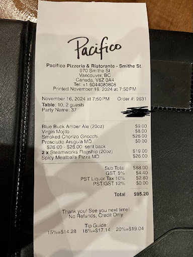 I come from a service background and am thoroughly disgusted with this establishment. Not only will I never eat here again, I will actively promote that no one I know does either. There are multiple wonderful restaurants in Vancouver, this isn’t one of...