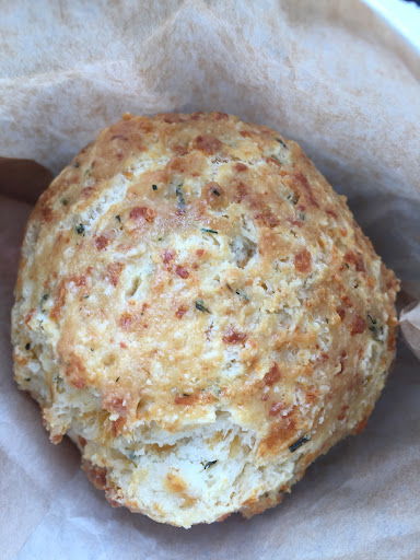 I came here around 1pm. There was some customers. No lineup. It was great! A barista at the cashier greeted me with a pleasant smile and asked for my order. I ordered a cheddar cheese scone and a cup of 12oz latte. They cost me $8.05. The price was average and reasonable. The scone was soft but it would be nice if a barista could heat it up a little bit, so it would be warm and fresh again. The latte was smooth and had a good balance of milk and coffee. I liked it.