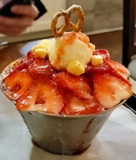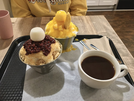 Read moreI came here with a friend to try their shaved ice! I don't think they have the toasts on their menu anymore (although the person who took our order mentioned they were out of stock of a few things, so maybe that was one of the things that was greyed out on the menu) - it was just shaved ice, cake slices, and drinks. The menu as it is still offers lots of options. I was sorely tempted by the beautiful carrot cake in the display, but I had my heart set on shaved ice, so I got the injeolmi snow and an americano to offset the cold dessert in the cold weather. The shaved ice was very creamy, and I enjoyed the nutty flavour of the liberal dusting of soybean powder and red beans with the chewy mochi. There was one big mochi ball on top but I was surprised by how many smaller mochi pieces were mixed in. They definitely did not skimp on toppings for either my shaved ice or for my friend who got the mango snow. My americano actually exceeded my expectations, it was pretty strong and had a rich flavour. Order at the counter and they'll call out your order when it's ready for you to pick up. The person working the front was very nice and gave my friend recommendations. The ambiance is nothing fancy but we found it very comfortable...
