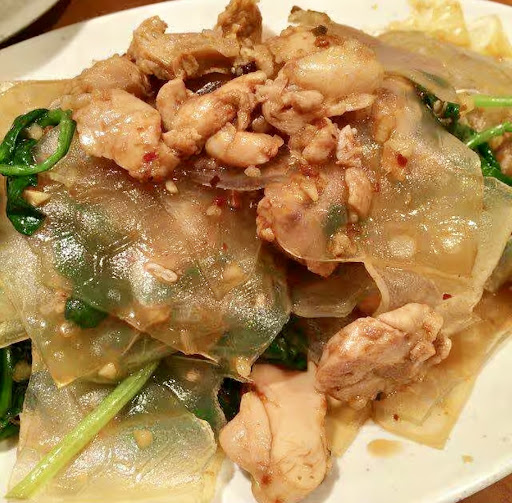 They do in house noodles, a northern chinese style. I love how these northern type chinese places have a see thru window so you can watch them make so many types of noodles. It's not as easy as it looks, it's alot of labor. On the menu I ordered the cold appy to start, the chicken and clear noodle. Wow... That was very nice. Light, refreshing, not heavy, not salty. Then the classic Dan Dan noodles with spicy peanut sauce, your choice of thin or thick noodles. I prefer the thin but I chose the thick because my friend likes the thick noodle. It's a very rich so I suggest sharing. It's delicious.
