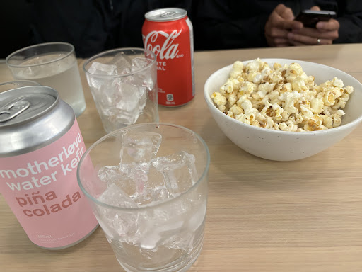 There is a free appetizer: salty sweet popcorn! It went well with the canned sodas.