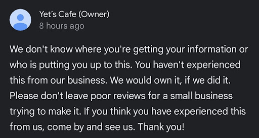 To the restaurant owner: