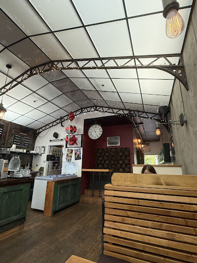 I thought the interior would be interesting and cozy but it didnât feel like that. For some reason they have an ice cream section and hence a huge neon ice cream light at the entrance which doesnât go with the interior decorations at all, killing all the vibes about being a train station platform.